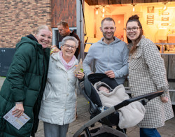 Bewoners, medewerkers van AC Borst Bouw en Woningbedrijf Velsen vieren de oplevering