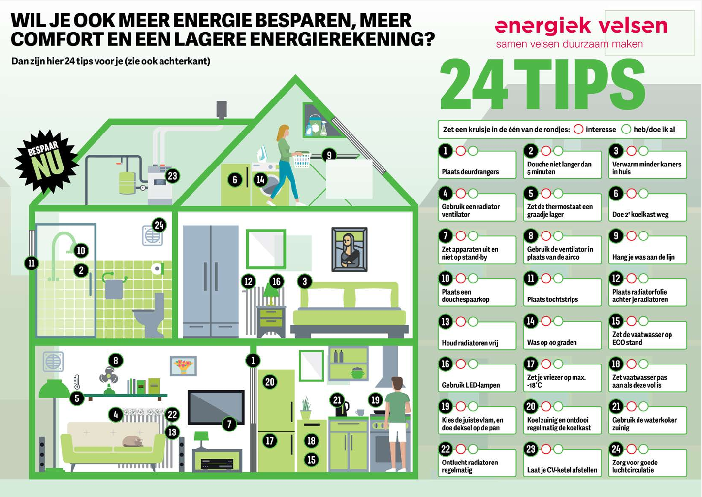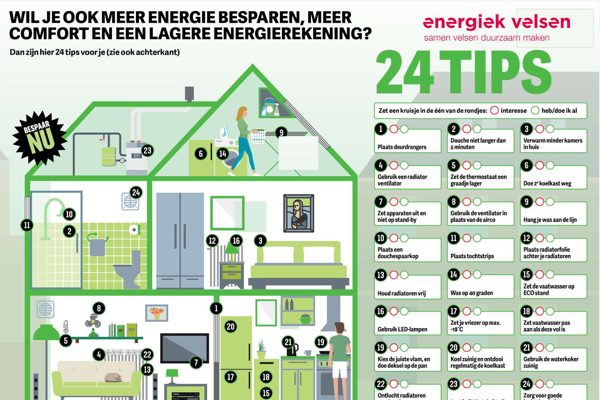 Woningbedrijf Velsen is verantwoordelijk voor energiebesparende aanpassingen aan uw woning om het energielabel te verbeteren. U kunt zelf ook energie besparen door bijvoorbeeld de verwarming lager te zetten en zuinige elektrische apparaten aan te schaffen. Bekijk wat u nog meer kunt doen om energie te besparen op