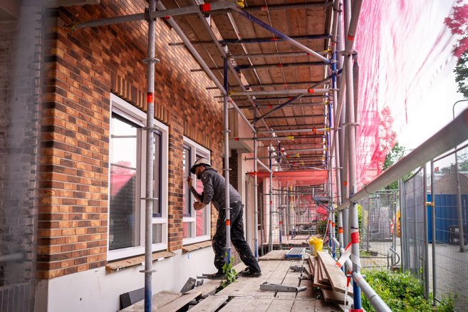 Woningbedrijf Velsen verbetert samen met aannemer AC Borst Bouw uit Castricum momenteel 78 portiekwoningen aan de Vechtstraat 121 t/m 179 en Scheldestraat 62 t/m 156 in IJmuiden. Bijzonder aan dit project is dat de gevels worden ingepakt met isolatie en minerale (kunststof) strips. Hierdoor krijgen de woningen een compleet nieuwe uitstraling. De strips zijn niet te onderscheiden van gewone bakstenen.