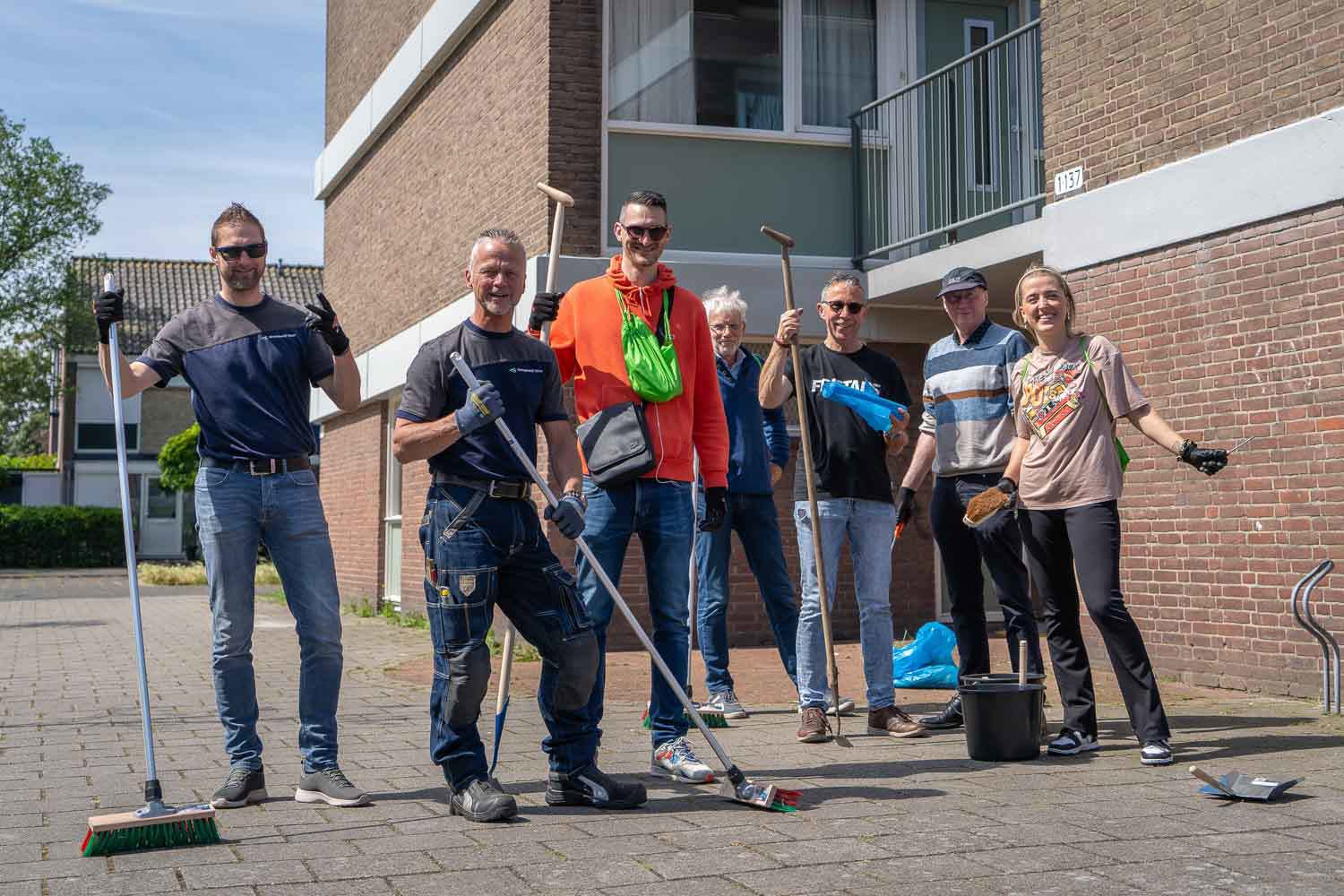 Op donderdag 13 juni staken zo’n 60 collega’s van Woningbedrijf Velsen de handen uit de mouwen in Zee- en Duinwijk. We prikten zwerfvuil, brachten winkelwagentjes terug, maakten gootjes schoon bij de galerijflats, gingen in gesprek met bewoners en hielpen mee met het planten van plantjes in de gloednieuwe biologische speel- en pluktuin achter de galerijflat aan de Schiplaan.